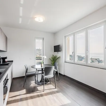 Apartament Rapallo - Vista Mare Panoramica Con Piscina posiada restaurację tarasową i pełnowymiarową kuchnię z widokiem na ogród. Apartament oferuje bidet.