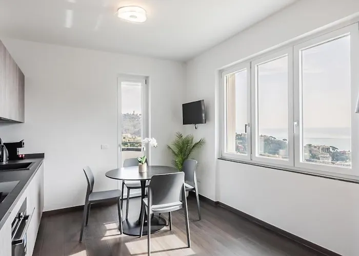 Kuchnia posiada lodówkę i piekarnik do komfortowego gotowania w obiekcie noclegowym. Ten apartament leży w odległości krótkiego spaceru od stacji kolejki linowej Rapallo-Montallegro. Apartament oferuje taras oraz zewnętrzny basen.